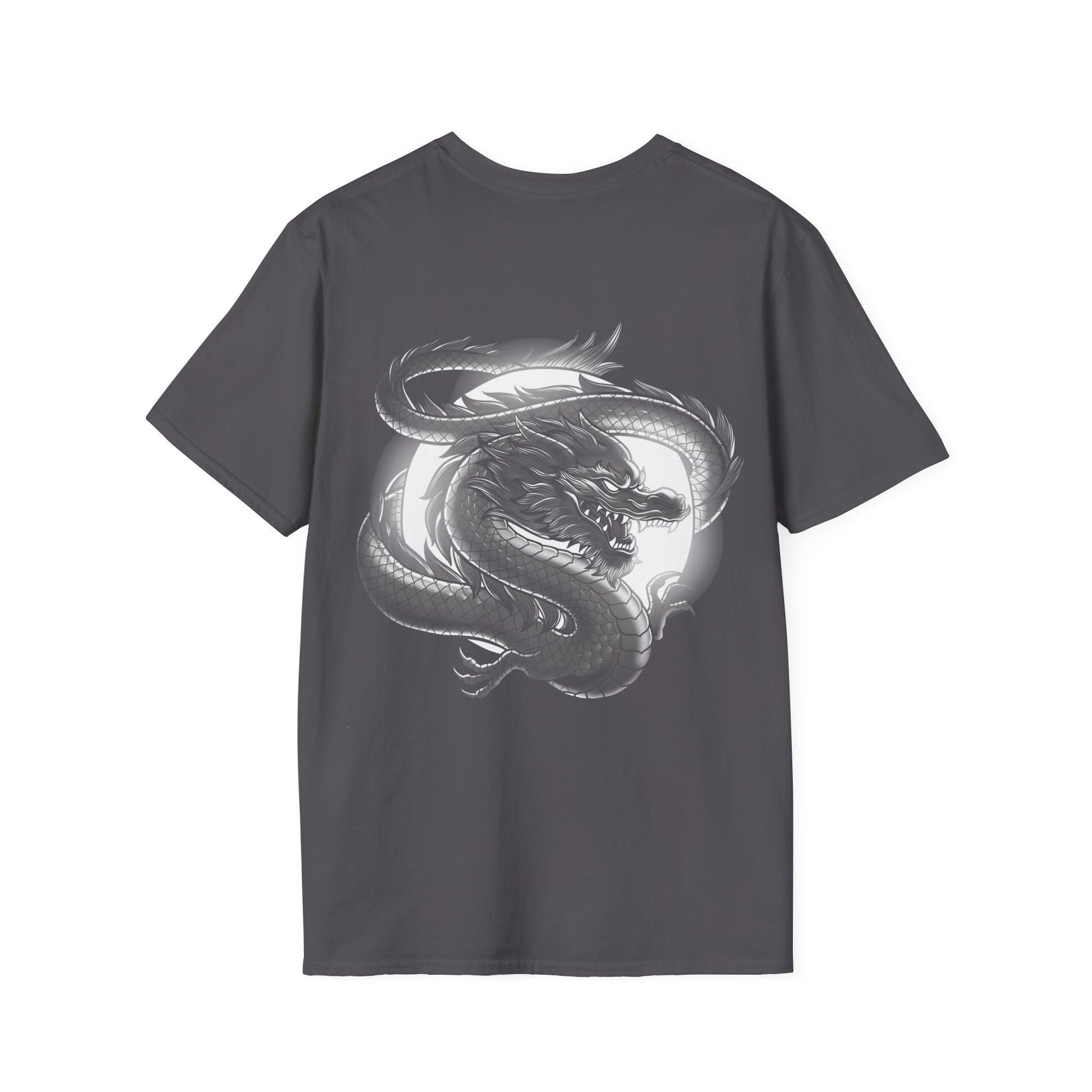 The Moon Dragon T-Shirt symbolizes the power of the moon lighting up the dark, with spots resembling a dragon. Wear this as a symbol of your power to persevere during darker times and the toughest workouts. Great for indoors, outdoors, relaxing, or training. Relevant for those who seek strength and resilience, or just to look cool at Lunar New Year celebrations.